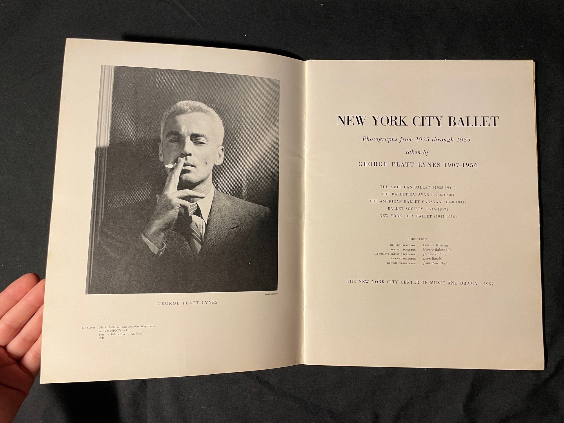 Maria Tallchief and Francisco Moncion are featured on the cover. This book is a portfolio of photos by George Platt Lynes, depicting ballets from NYCB's early years 1935-1955.